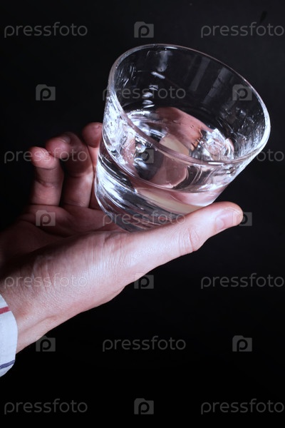 Рука со стаканом воды на черном фоне