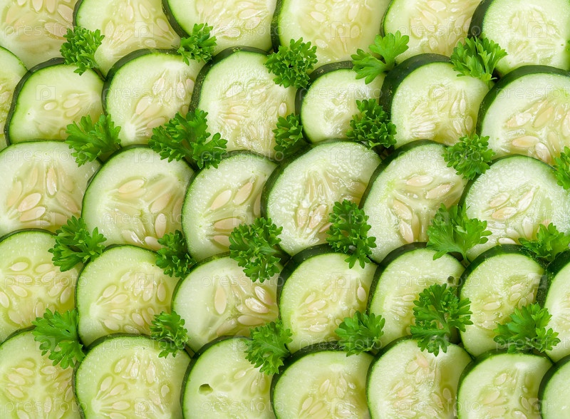 Свежие нарезанные огурцы с листьями салата