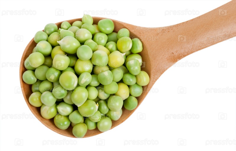 Зеленый горошек в деревянной ложке