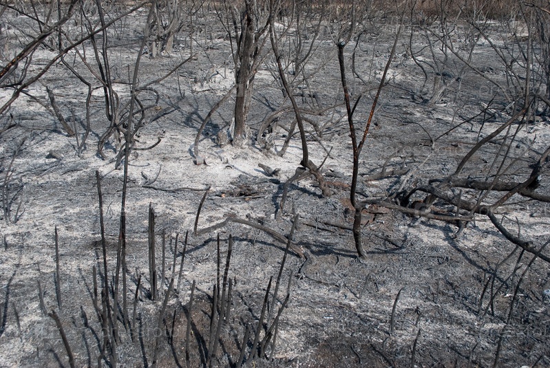 Сожженые, обгоревшие деревья после лесных пожаров