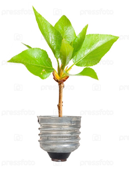 Зеленое дерево, растущее из лампочки