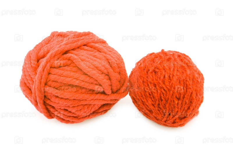 Два оранжевых клубка пряжи на белом фоне