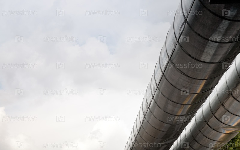 Магистральный трубопровод на фоне пасмурного неба