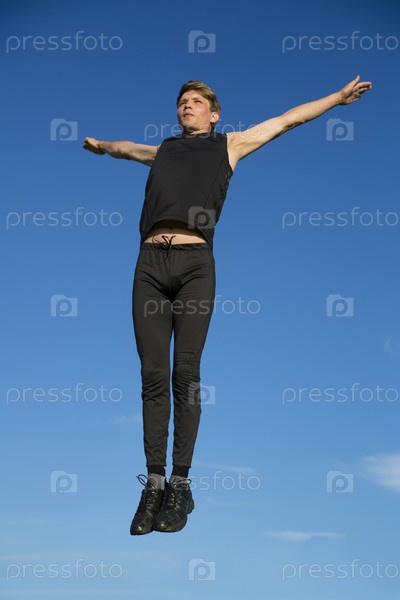 Спортсмен прыгает высоко над землей