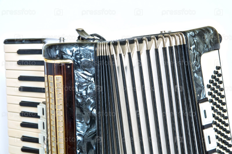 Блестящий аккордеон с черно-белыми кнопками
