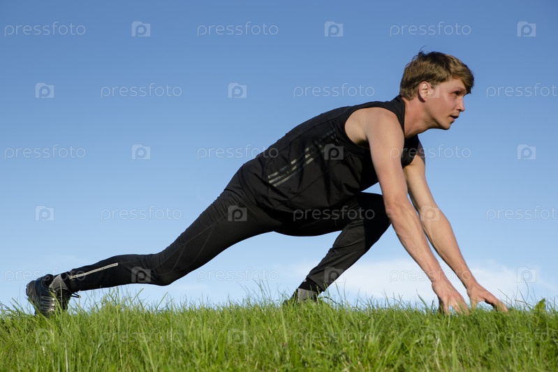Спортсмен готов к спринту и занял позицию