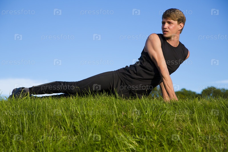 Спортсмен делает упражнение на растяжку мышц живота и спины