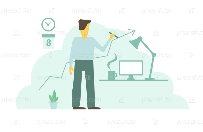 Бизнесмен рисует стрелки графика