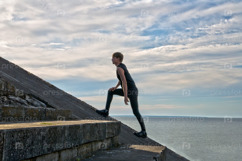 Спортсмен тренируется на сложном ландшафте перед соревнованием