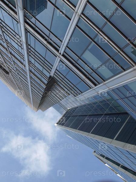 Современное здание из стали и стекла, архитектура в деловом районе Кэнэри-Уорф, Лондон, Великобритания