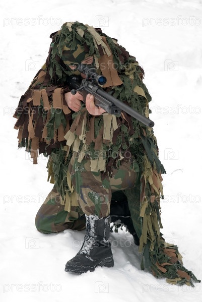 Мужчина в камуфляже со снайперской винтовкой в руках