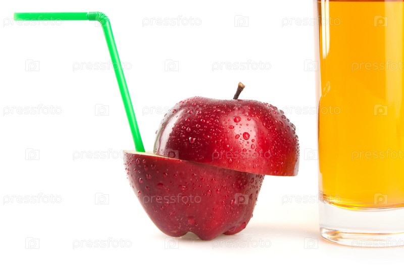 Красное яблоко и апельсиновый сок