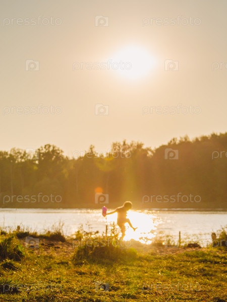 Маленький мальчик бежит от реки