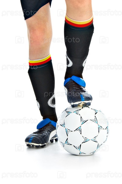Футболист с мячом, изолированный на белом фоне