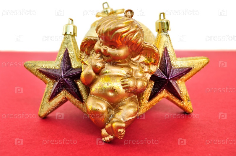 Ангел и золотые рождественские звезды