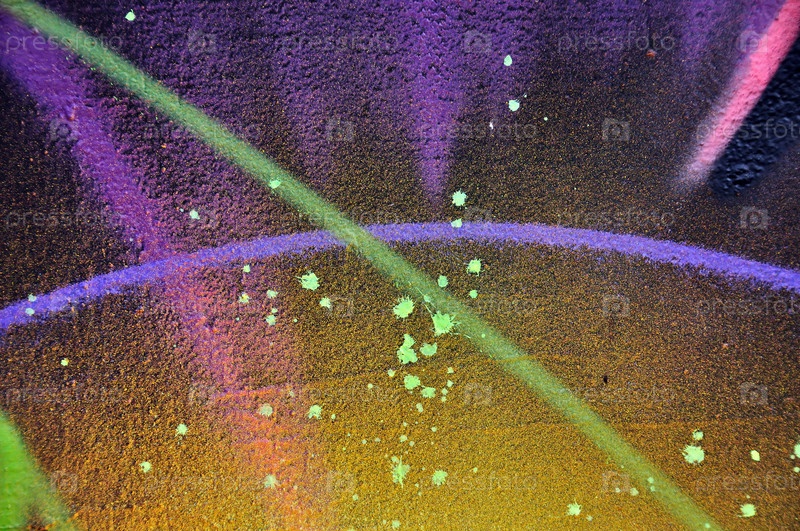 Брызги краски и цветные линии на шероховатой поверхности. Абстрактный фон