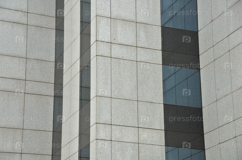 Окна и стены современного стеклянного здания. Архитектурная деталь
