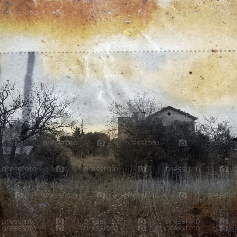 Заброшенный дом. Ретро-фотор=графия на окрашенной старой бумаге