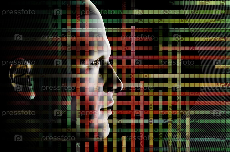 Электронный человек и компьютерный код. абстрактная футуристическая 3D-иллюстрация