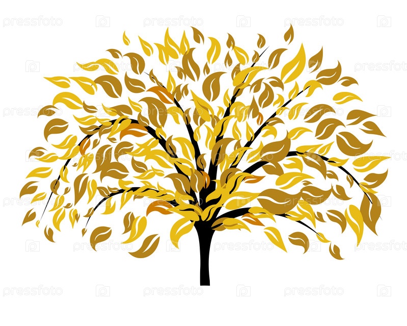 Осеннее дерево с падающими листьями