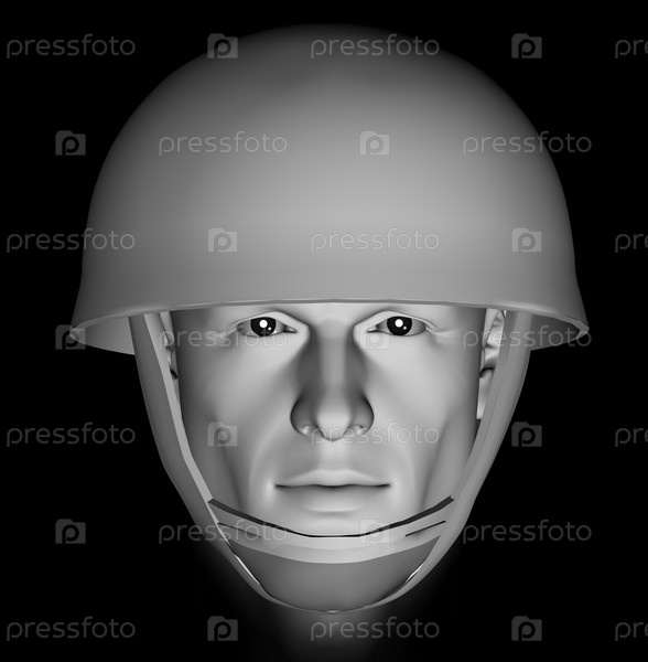 Голова солдата с драматическим освещением на черном фоне. 3D иллюстрация