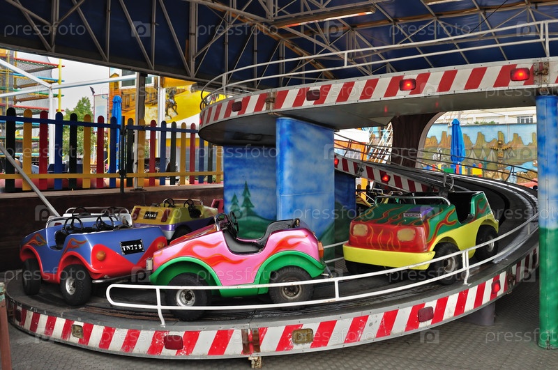 Автомобильная карусель в пустом парке развлечений на холодный день