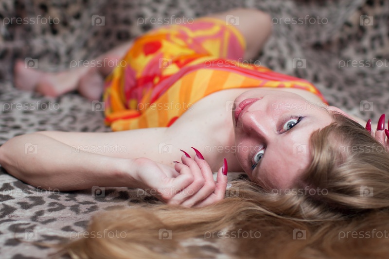 Соблазнительная женщина лежит на леопардовом покрывале