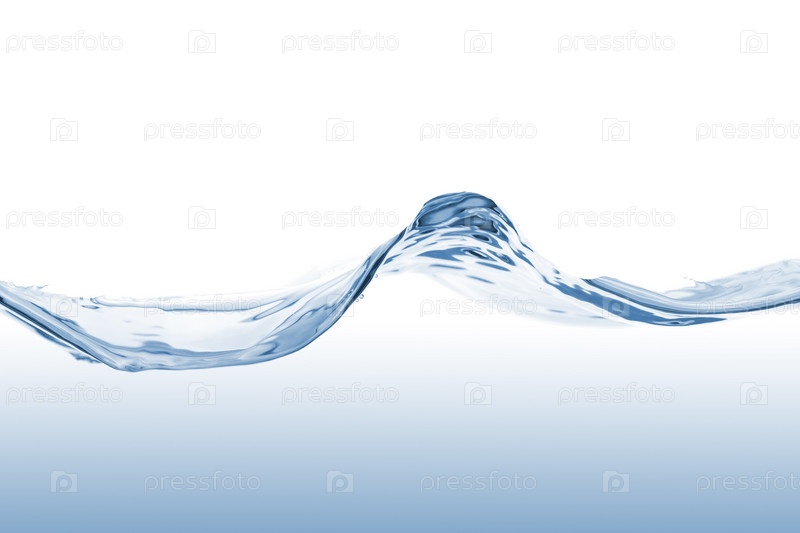 Волна голубой воды крупным планом на белом фоне