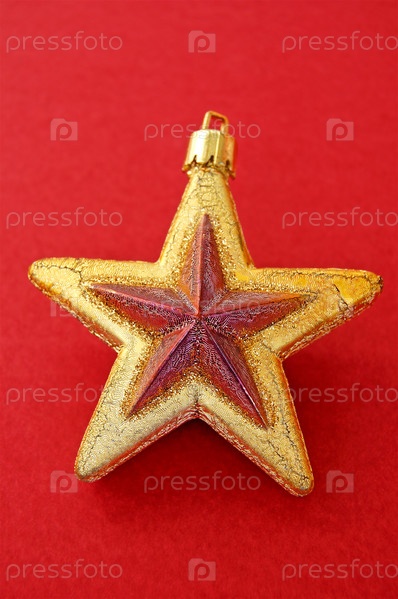 Рождественские украшения. Золотая звезда на красном фоне