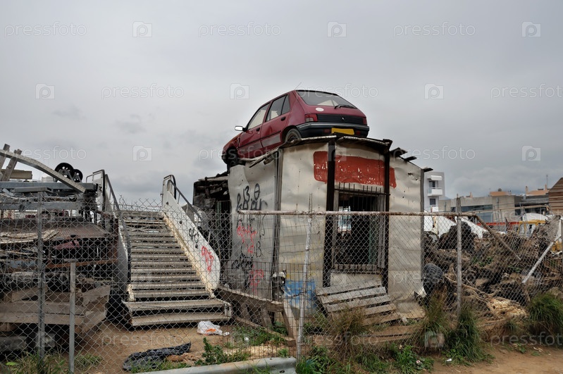 Ржавый автомобиль и лом металла на свалке