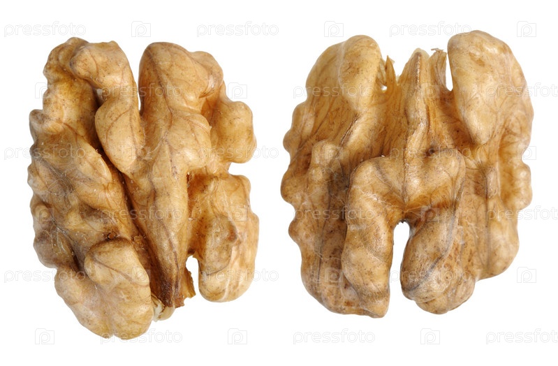 Греческий орех (Juglans regia), изолированный на белом фоне