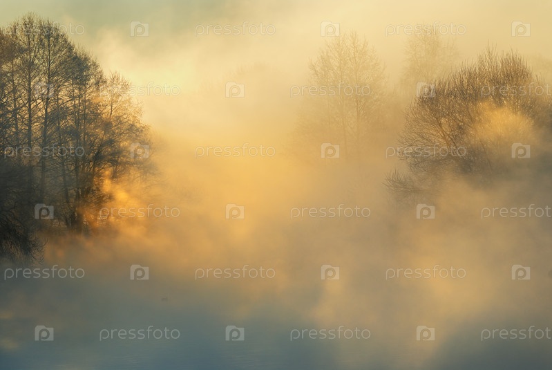 Морозное февральское утро, туман и солнце
