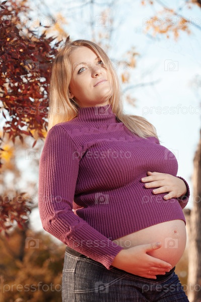 Красивая беременная женщина в осеннем парке