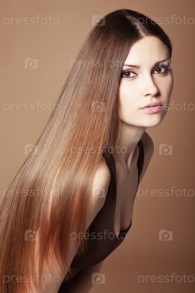 Портрет молодой красивой женщины с длинными блестящими волосами