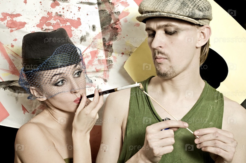 Молодой мужчина и женщина в стиле ретро