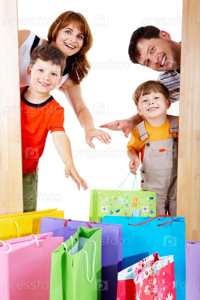 Счастливая семья с покупками