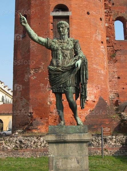 Памятник Цезарю Августу в башнях Палатин в Турине, Италия