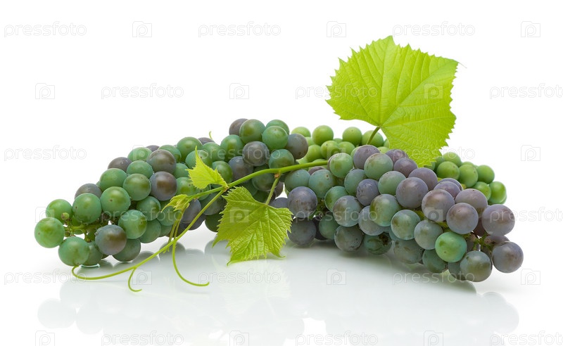Молодая гроздь винограда с листьями на белом фоне с отражением