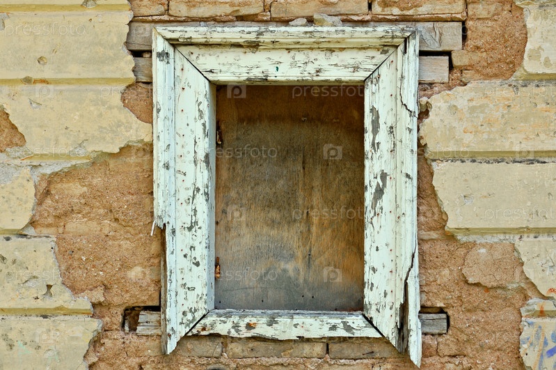 Деревянное окно и обшарпанная стена