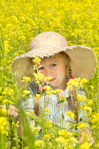 Девочка на прогулке на цветущем поле