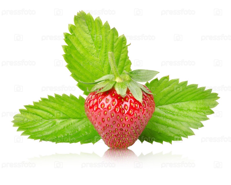 Спелая клубника с листьями, изолированная на белом фоне