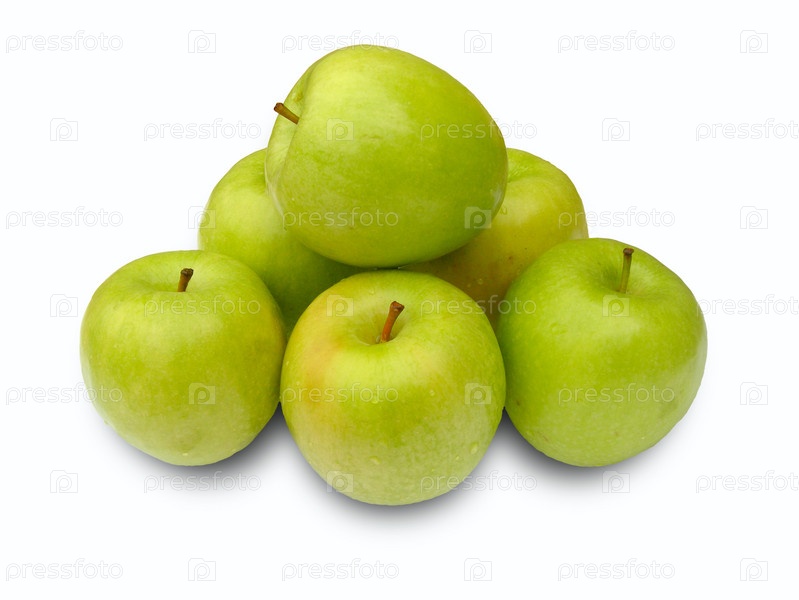 Зеленые яблоки на белом фоне