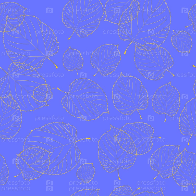 Бесшовная текстура из желтых скелетированных листьев липы на синем фоне