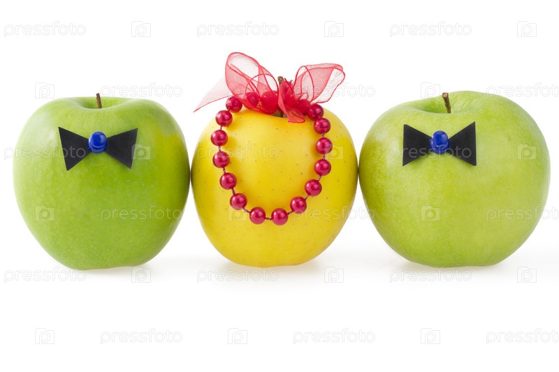 Три яблока как концепция конкуренции между двумя мужчинами и одной женщиной