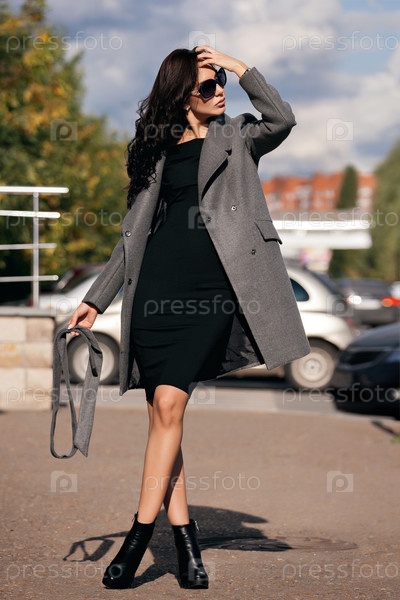 Девушка в стильном сером пальто