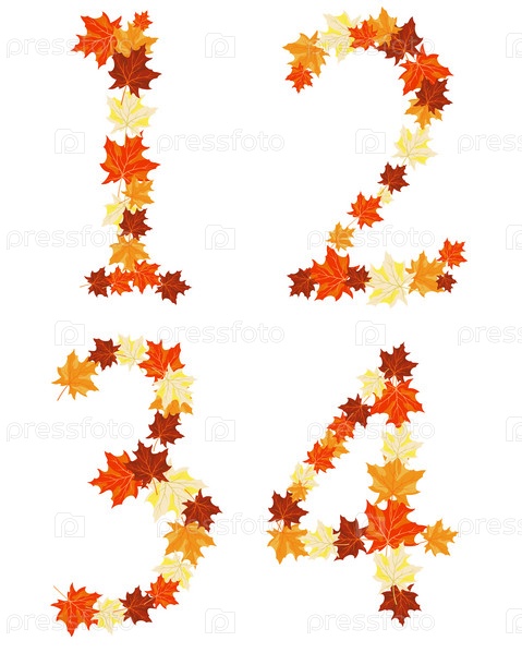 Цифры 1 2 3 4 из осенних кленовых листьев