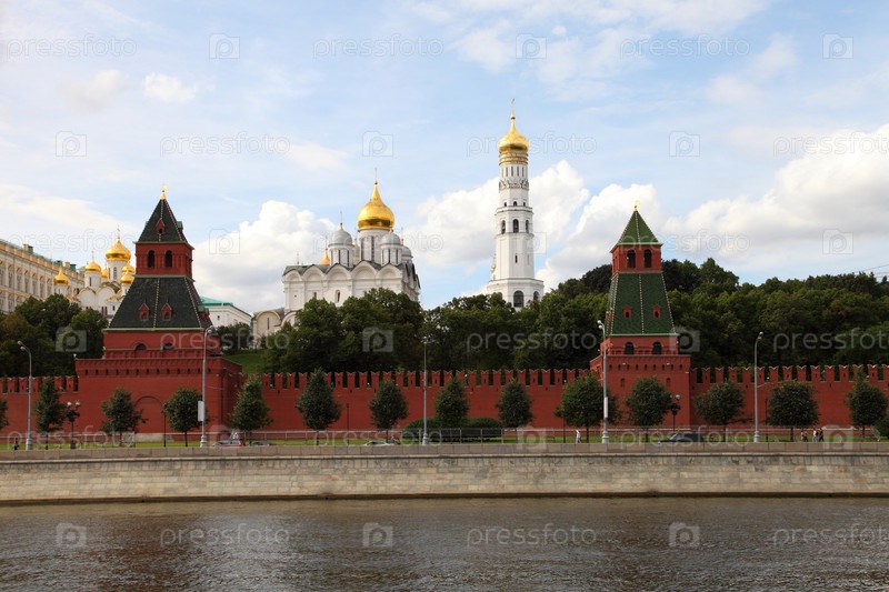 Вид на набережную и Московский Кремль с Москвы-реки, Москва, Россия