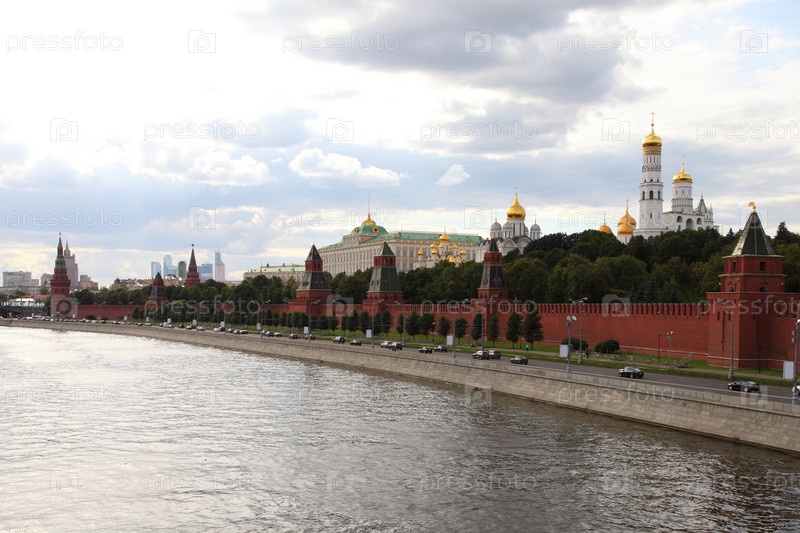 Московский Кремль и Москва-реки в пасмурный день, Россия