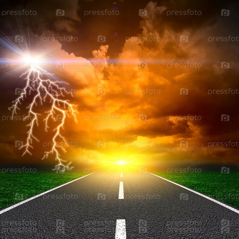 Асфальт и молния на грозовом небе