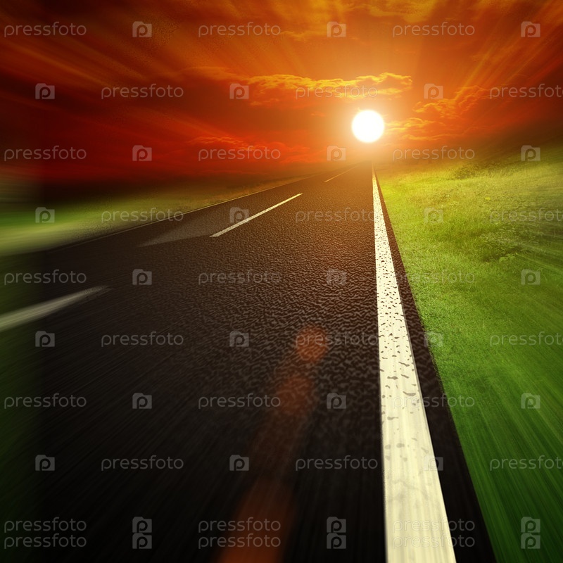 Асфальтовая дорога на закате солнца